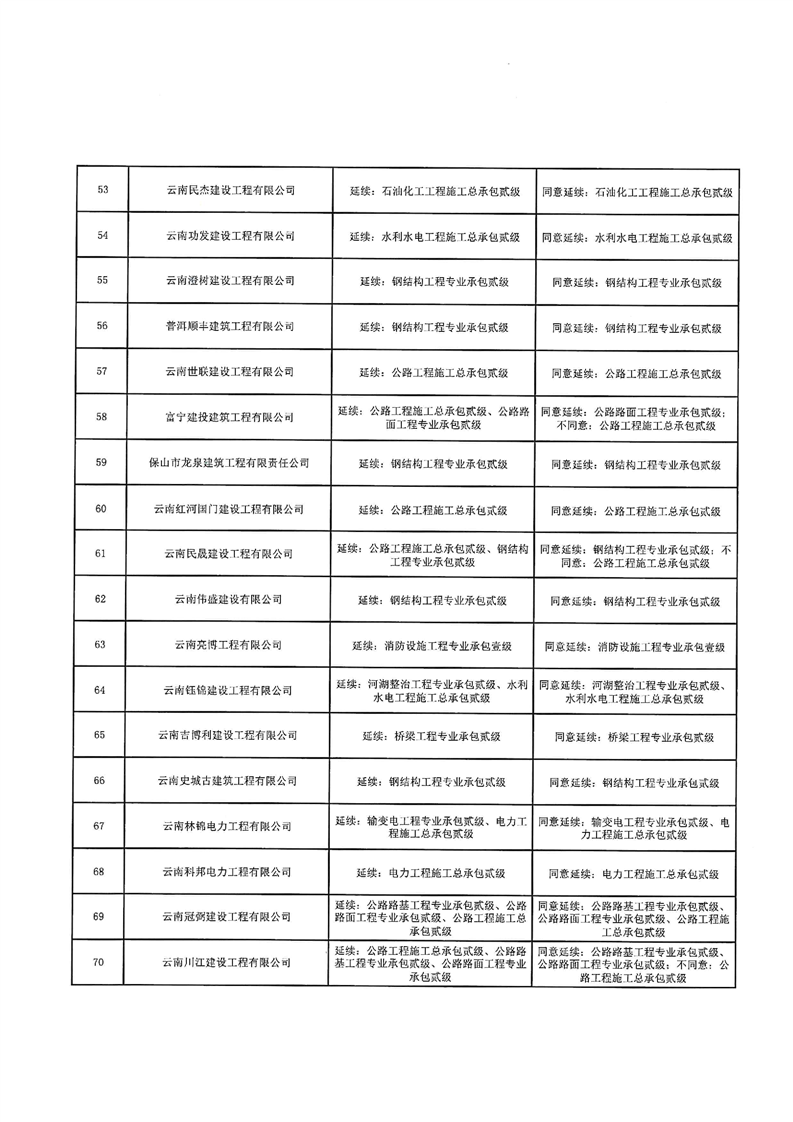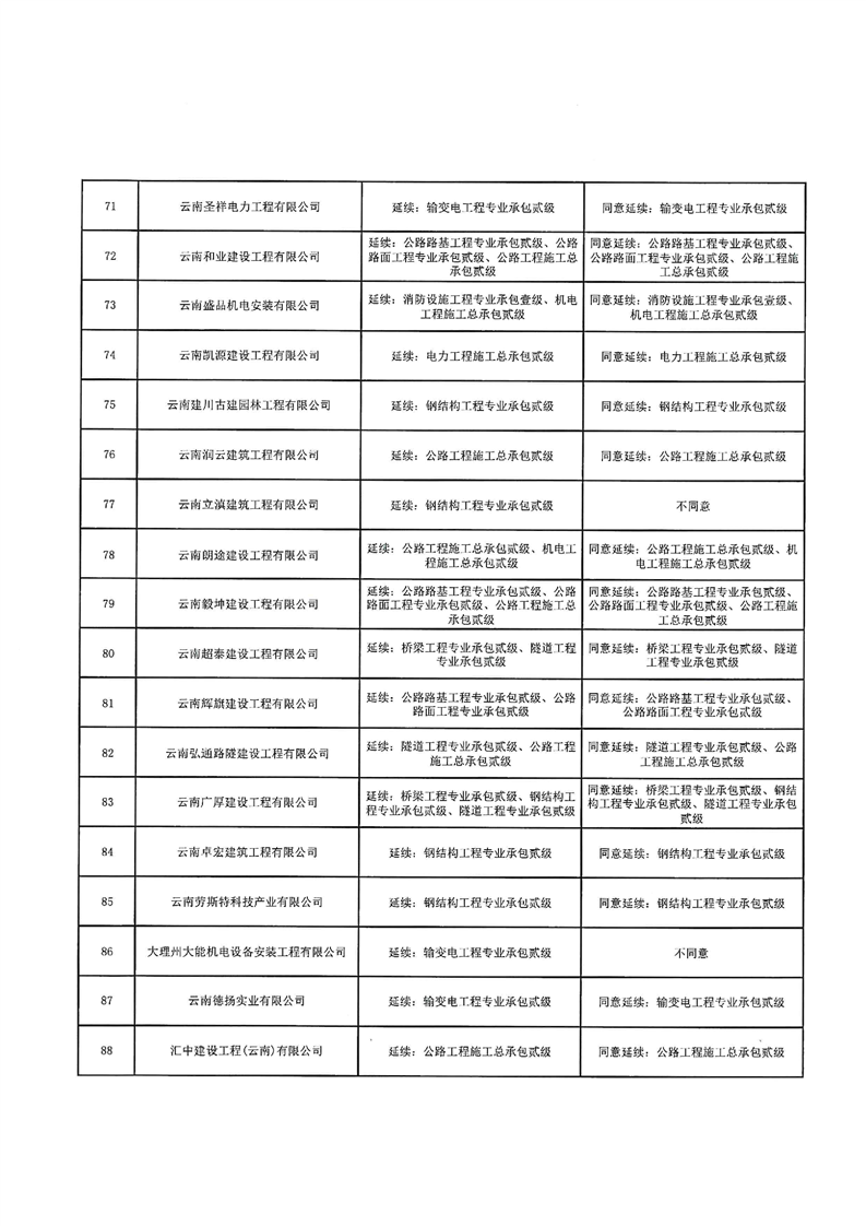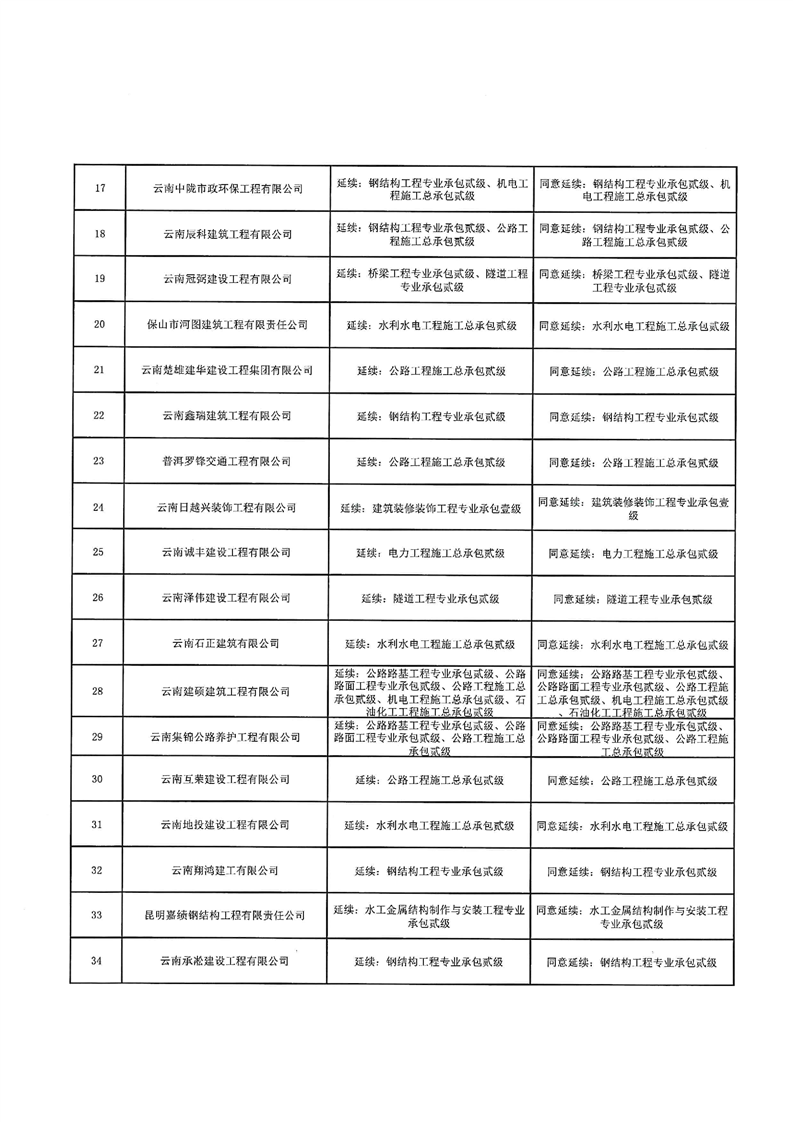 公文名称: 云南省住房和城乡建设厅关于2025年云南省建筑业企业第34批(延续第25批) 资质审查结果公示