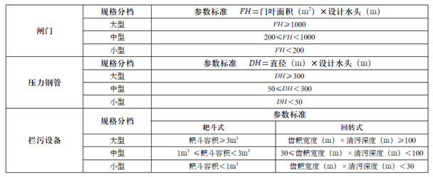 二、水工金属结构设备(闸门、压力钢管、拦污设备)等级划分标准