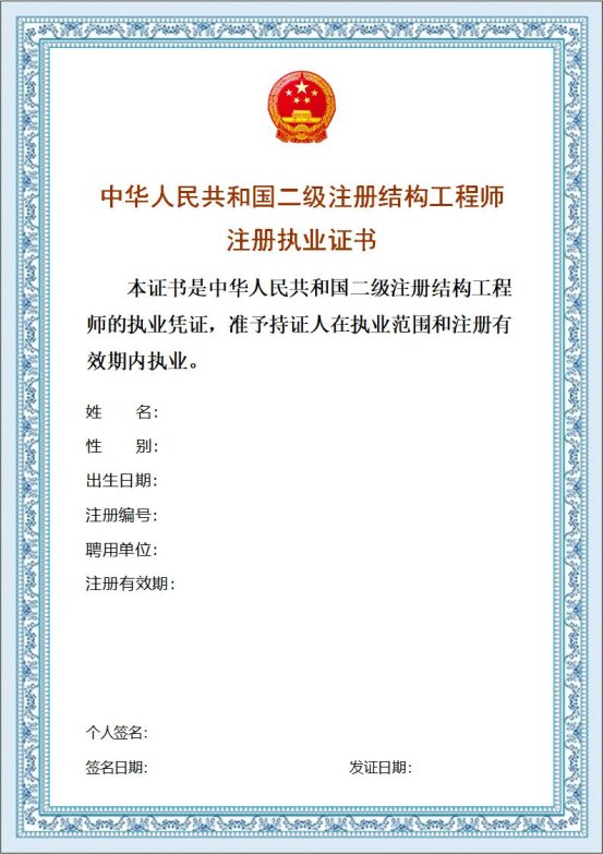 2.《二级注册结构工程师注册执业证书》样式