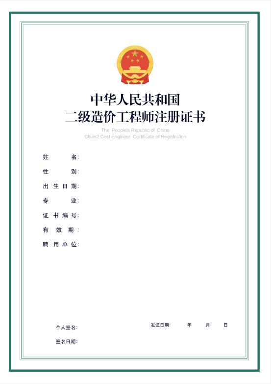3.《二级造价工程师注册证书》样式
