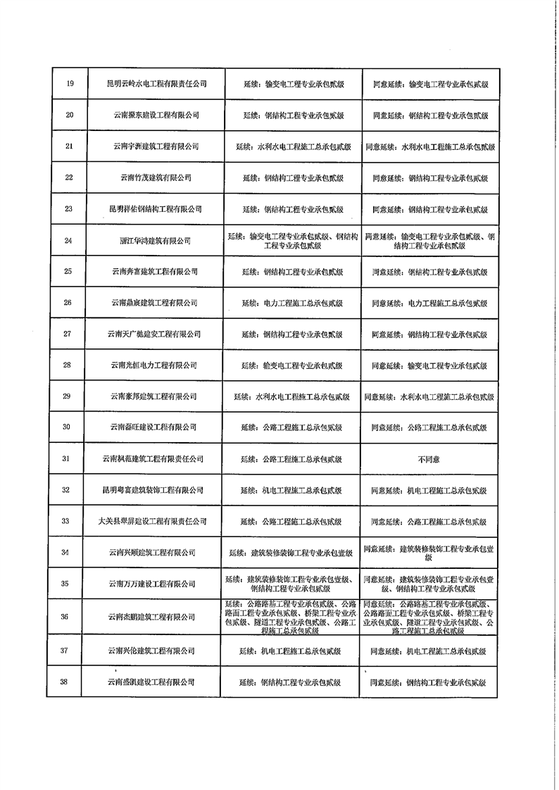 云南省住房和城乡建设厅关于2025年云南省建筑业企业第47批(延续第35批)资质审查结果公示